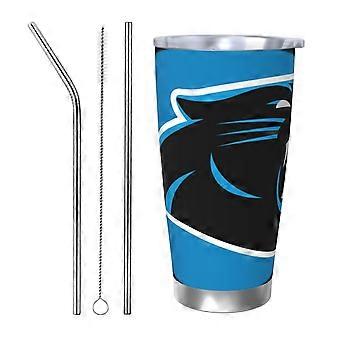 Panthers Football Team Theme 304 Stainless Steel Thermos Cup with Lid and Straw, 20oz Car Cup Compatible with Coffee, Hot & Cold Drinks