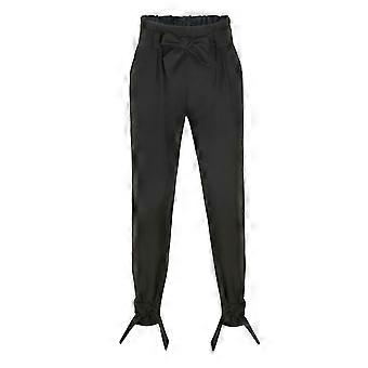 Mulheres Ruffle cintura alta calças cônicas com bolsos de cinto Bowknot calças de trabalho