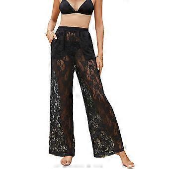 Mulheres Pura Malha cobrir calças alta cintura sexy oca fora floral renda biquíni fundo perna larga calças palazzo