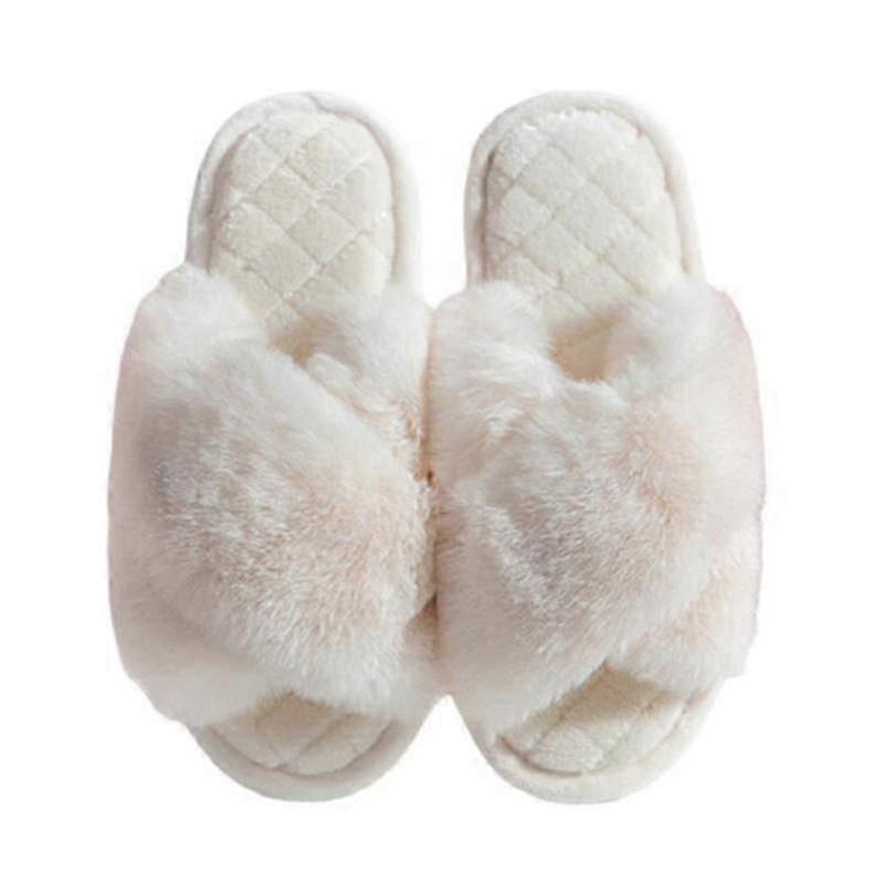 Women's Fuzzy Cross Band Slippers: Soft & Warm House Shoes with Plush Furry Uppers, Open Toe & Breathable Comfort for Winter Indoors & Outdoors