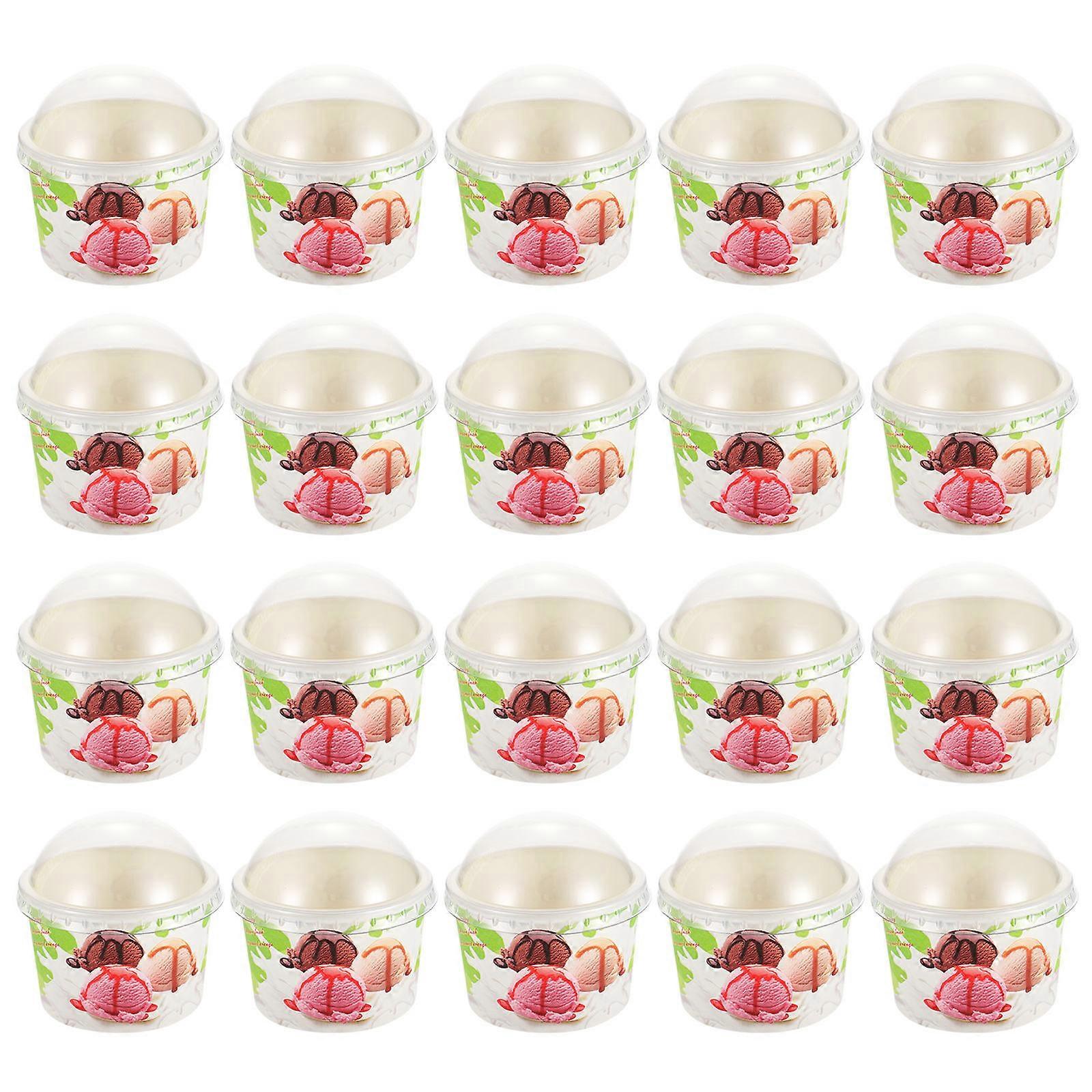 Paper Disposable Ice Cream Cups for Dessert Use 100Sets with Lids