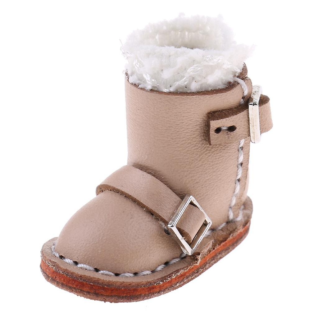 Pair of PU Leather Lace Buckle Boots Shoes for 12 inch Blythe Doll Apricot