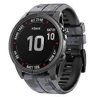 For Garmin Fenix 7 Camouflage Silicone Watch Band