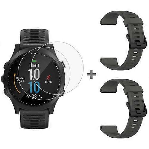 For Garmin Forerunner 945 2pcs Silicone Watch Band with 2pcs Tempered Glass Film