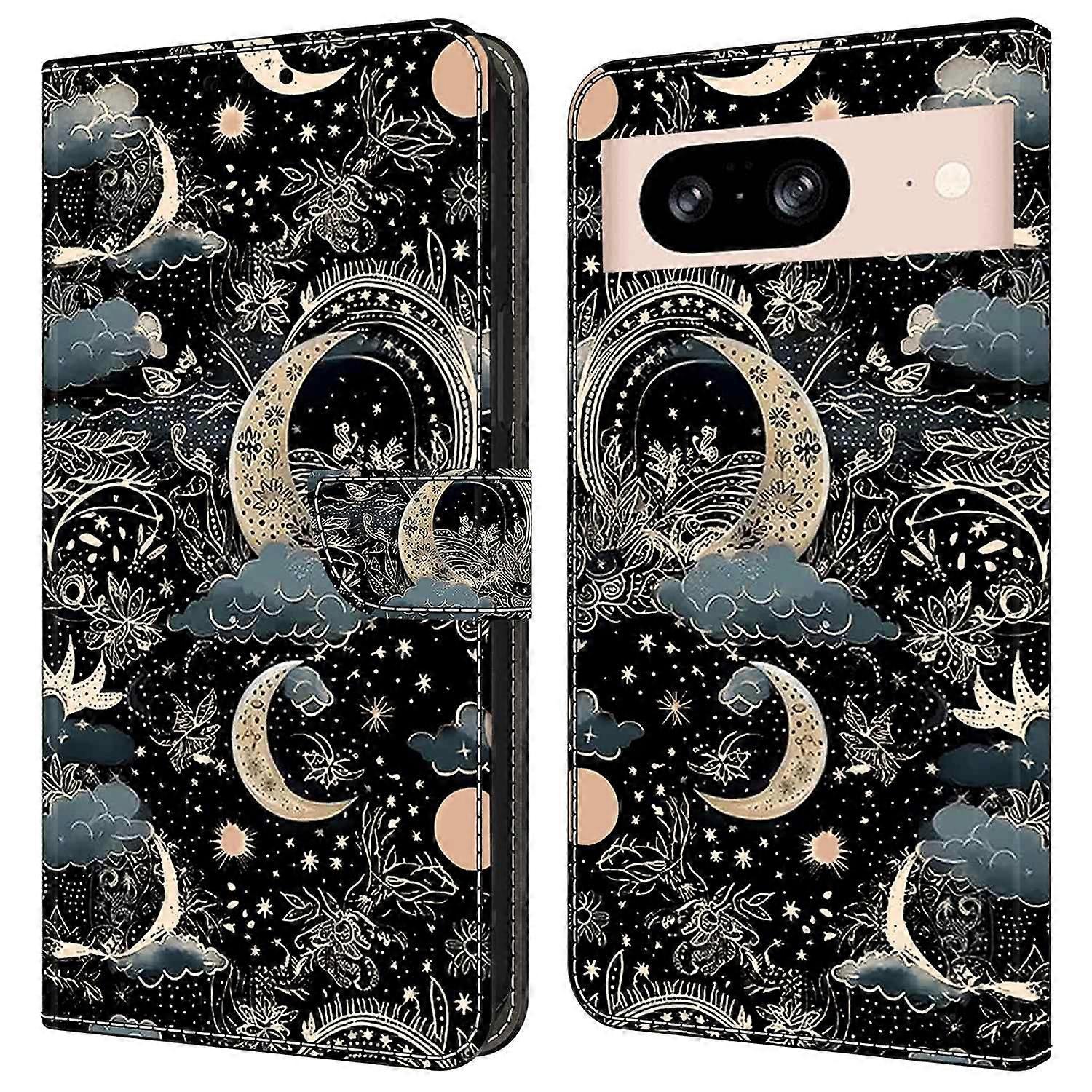 For Google Pixel 8a Case PU Leather Wallet Phone Cover with Stand - Moon
