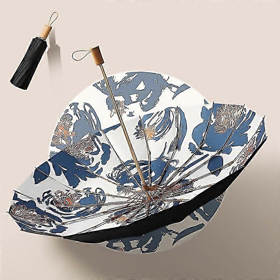 For 3fold 16bone Hand Open Umbrella Retro Wood Handle Glue Sunshade Umbrella Black