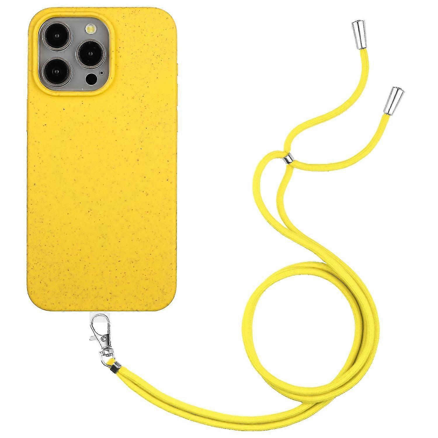 For Iiphone 12 6.1 Inch/ 12 Pro 6.1 Inch Phone Case With Lanyard Anti-drop Wheat Straw+tpu Cover