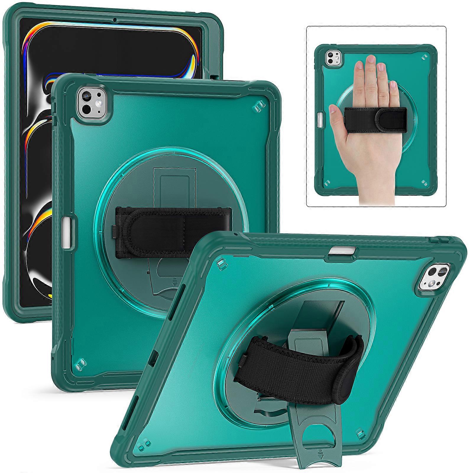 For iPad Pro 13 (2024) Case Kickstand PC+TPU+Silicone Tablet Cover with Rotary Hand Strap