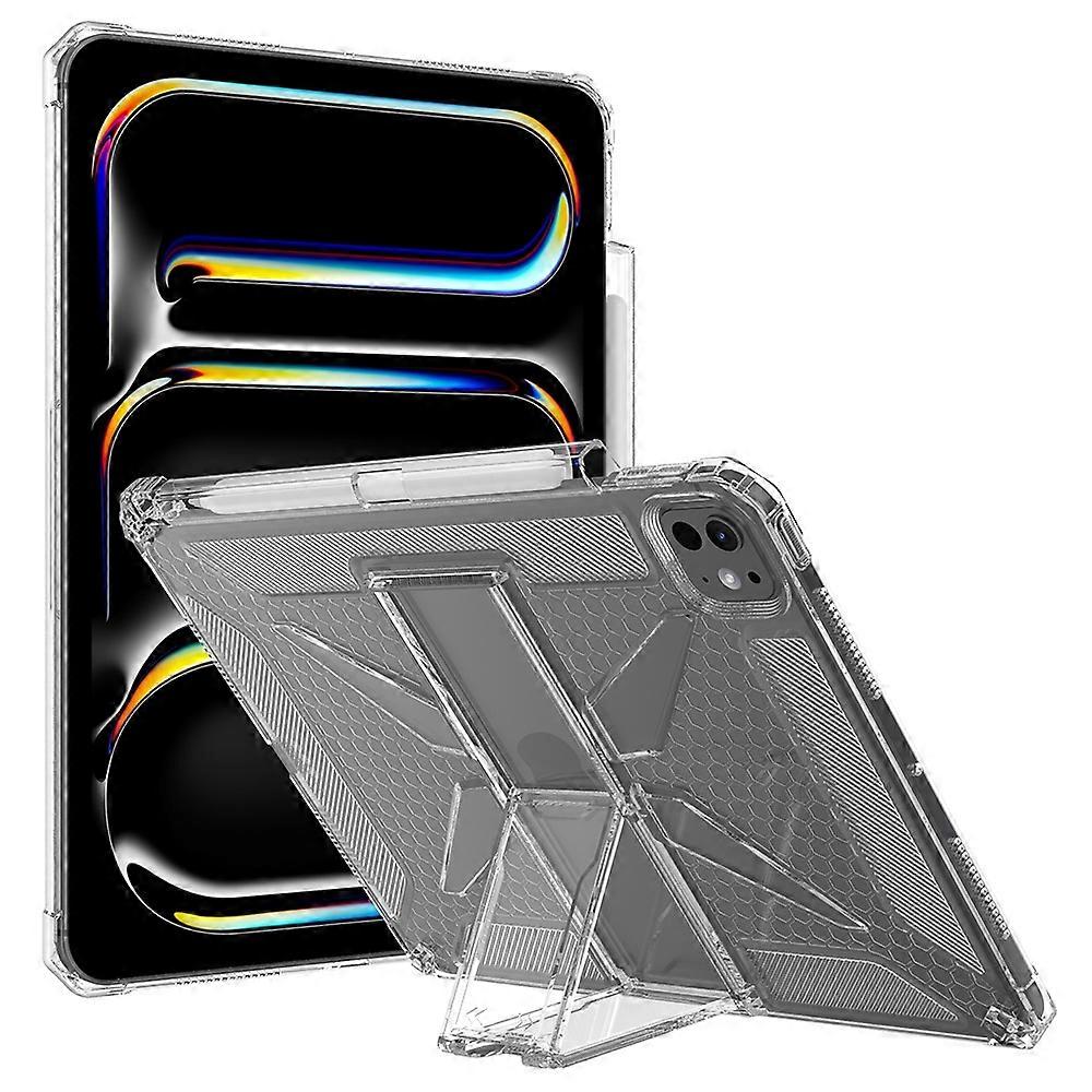 For iPad Pro 13 (2024) Clear Case Kickstand Shockproof TPU + PC Tablet Cover with Pen Slot