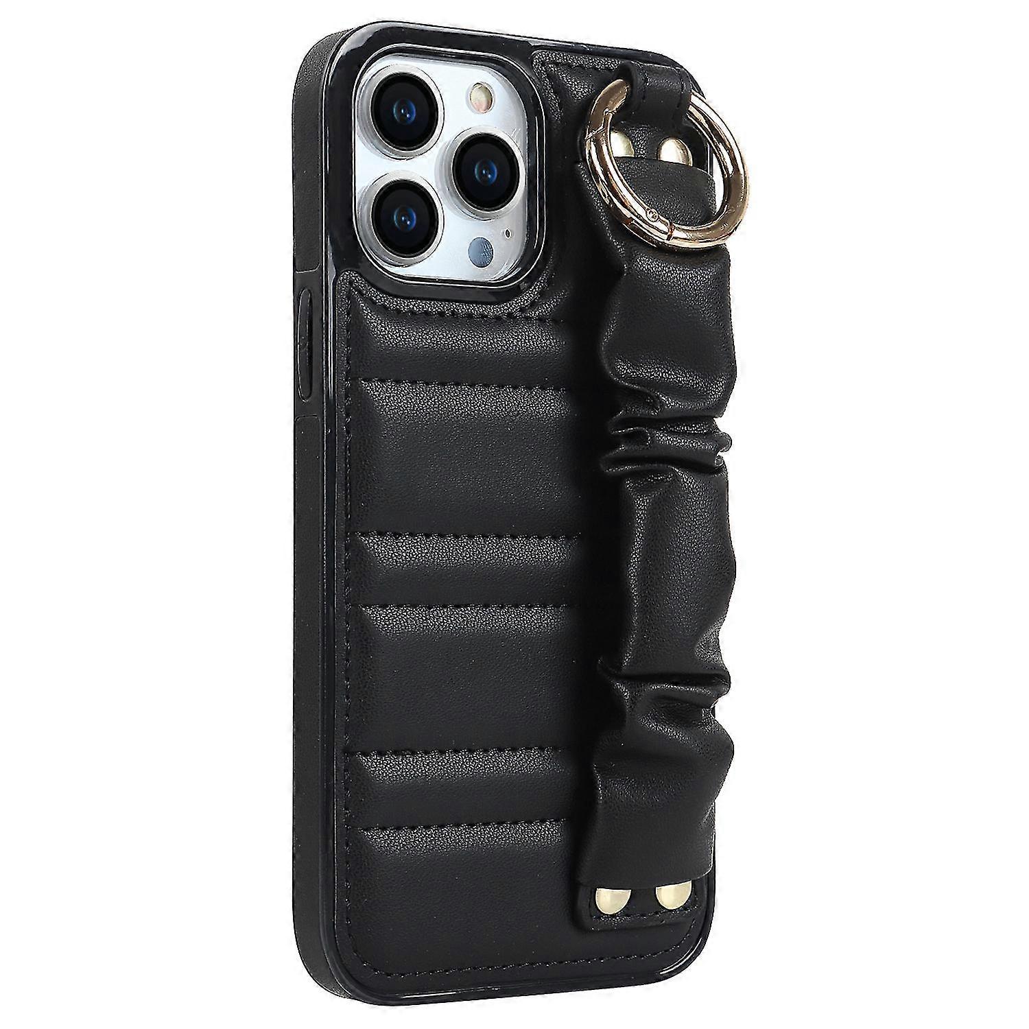 For iPhone 13 Pro Max Case Pleated Wristband PU Leather Coated TPU Cover