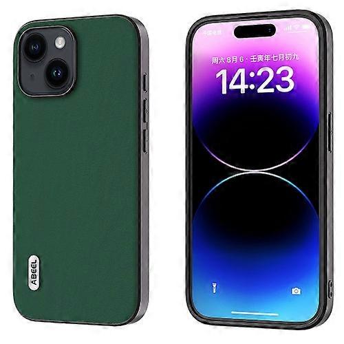 For iPhone 15 ABEEL Genuine Leather Silky Soft Black Edge Mobile Phone Case