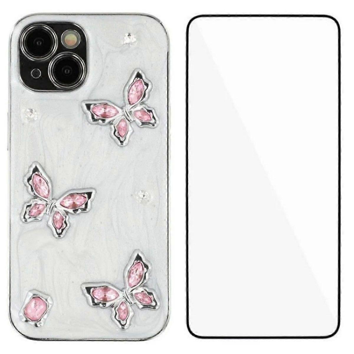 For iPhone 15 Case Electroplated Epoxy TPU + Acrylic Phone Cover with Tempered Glass