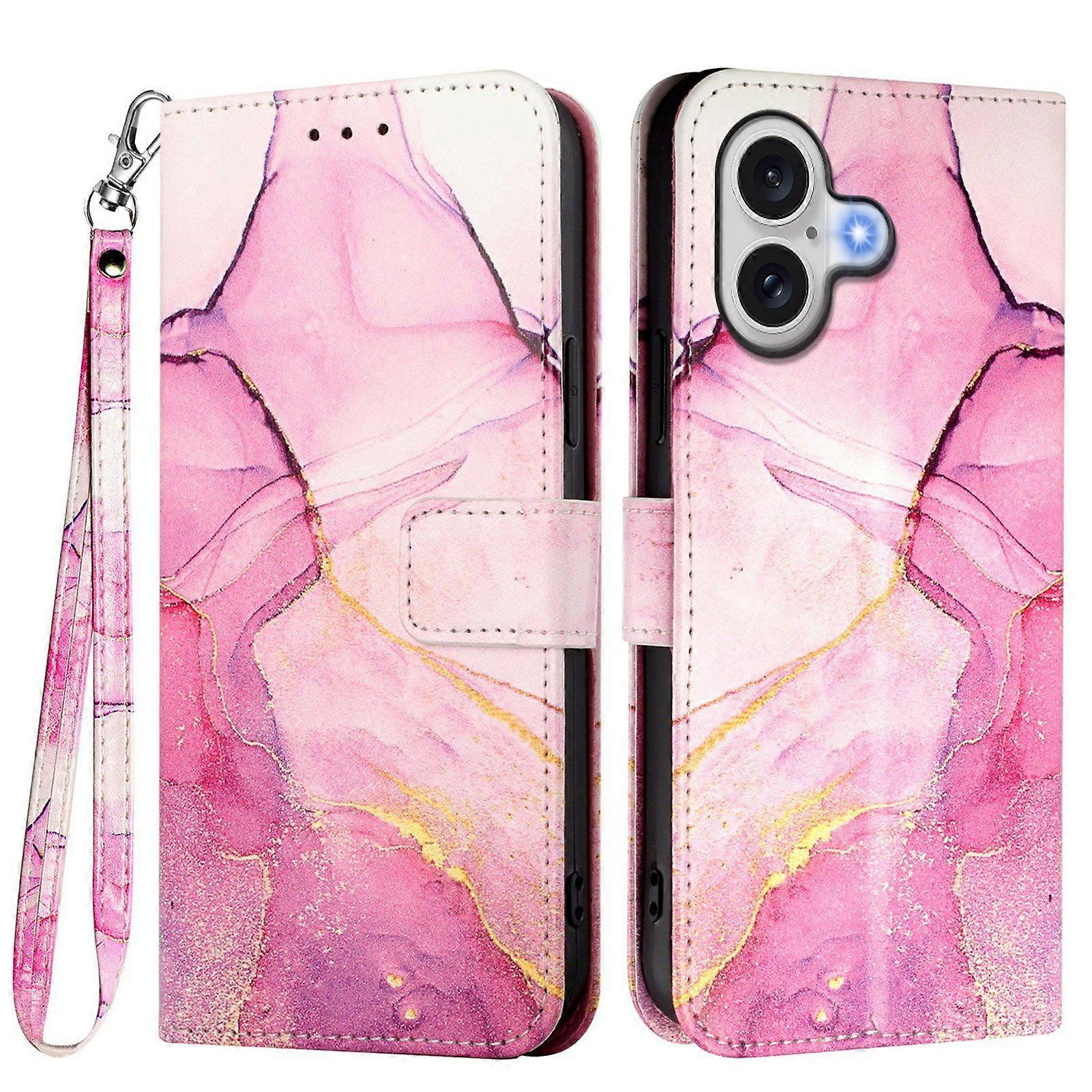 For iPhone 17 Case with Strap Marble Pattern Leather Phone Cover Card Holder