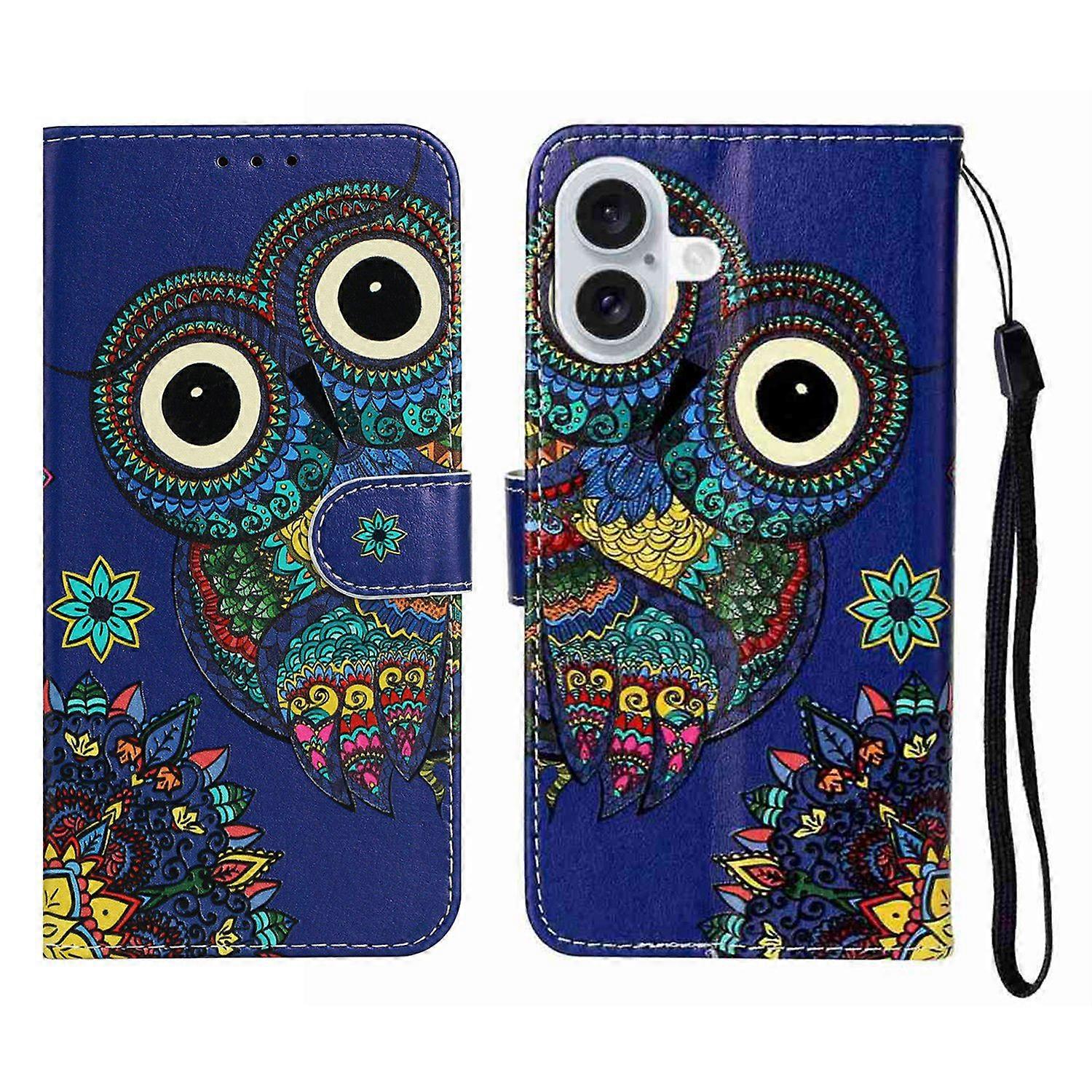 For iPhone 17 Case Pattern Leather Wallet Phone Cover with Strap