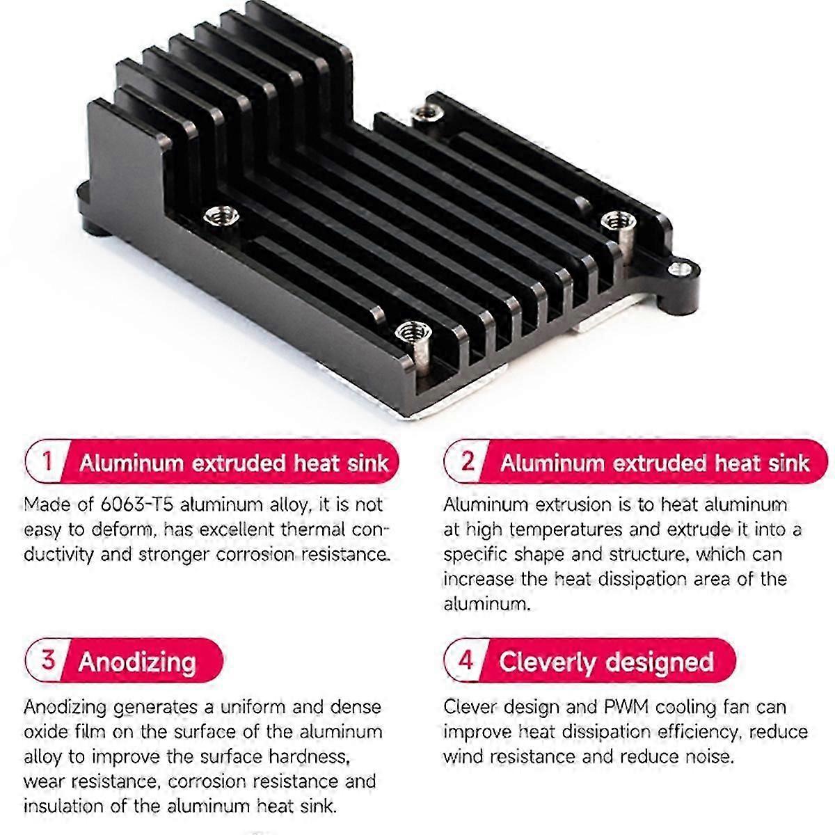 For Raspberry Pi 5 Aluminum Case Self-Design Active Cooler Black Passive Cooling Shell with PWM Fan