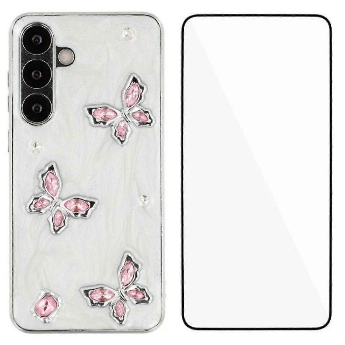 For Samsung Galaxy S23 FE Case Electroplated Epoxy TPU + Acrylic Phone Cover with Tempered Glass