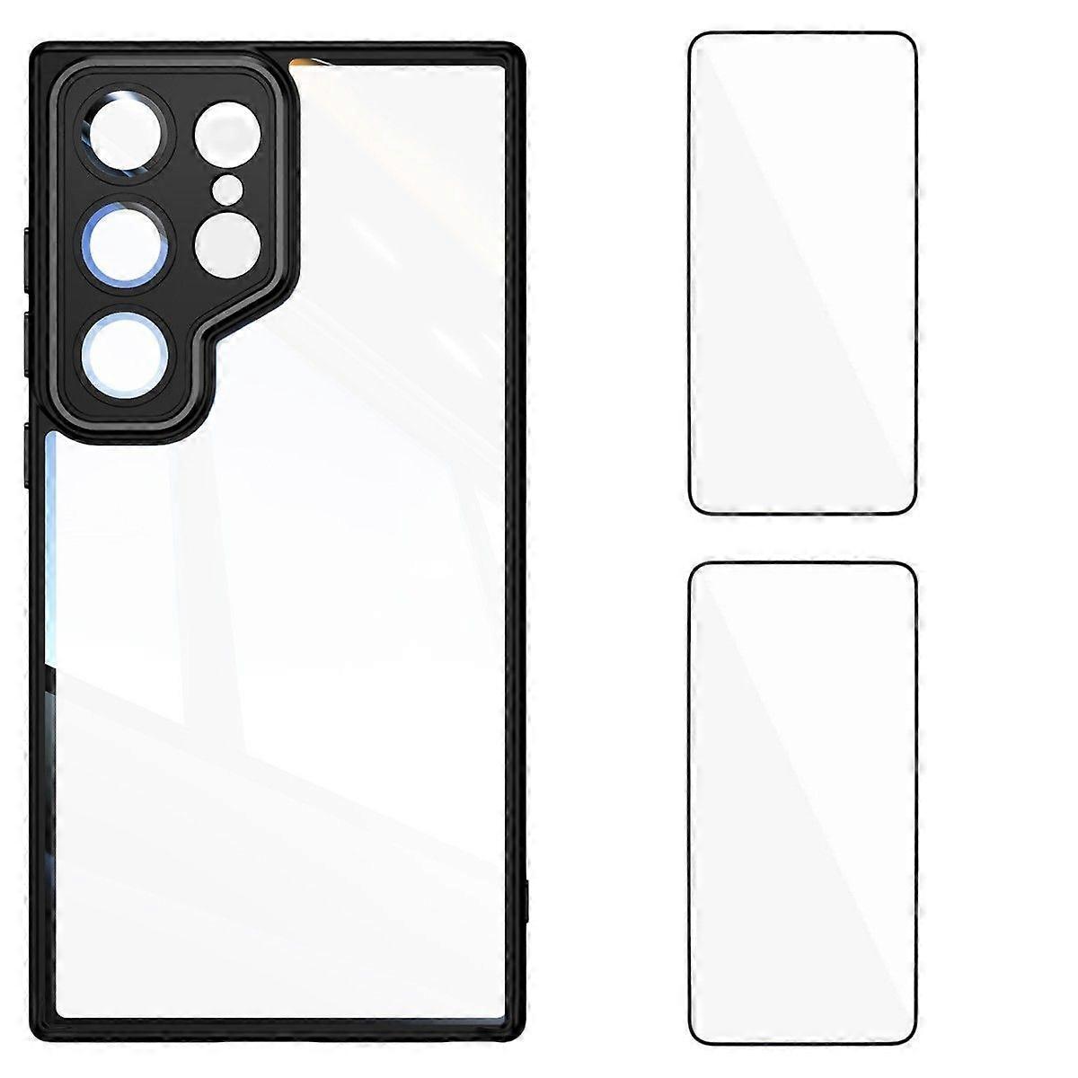 For Samsung Galaxy S23 Ultra TPU Case Drop-proof Clear Phone Cover with 2Pcs Tempered Glass Film