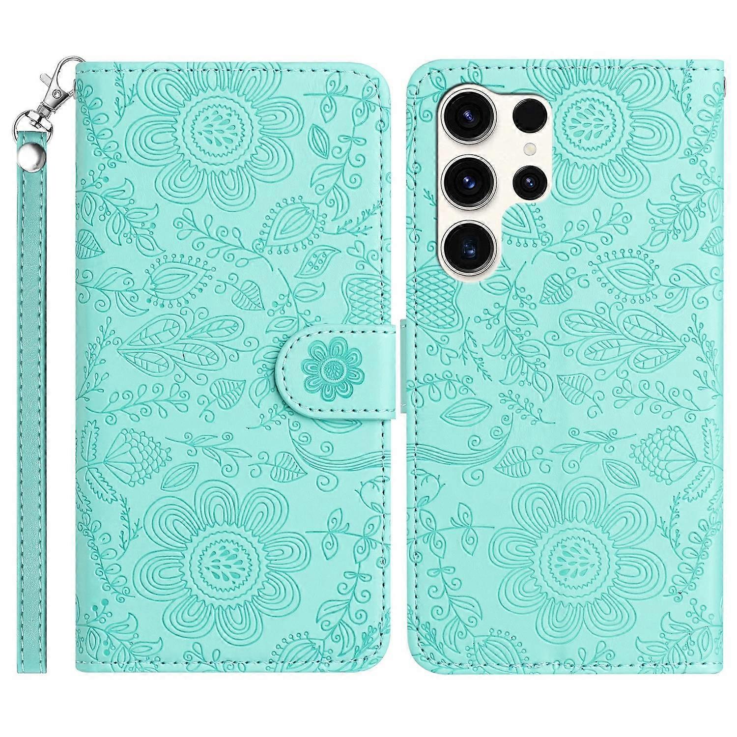 For Samsung Galaxy S25 Ultra Case Flower Imprint Leather Flip Wallet Phone Cover with Wrist Strap