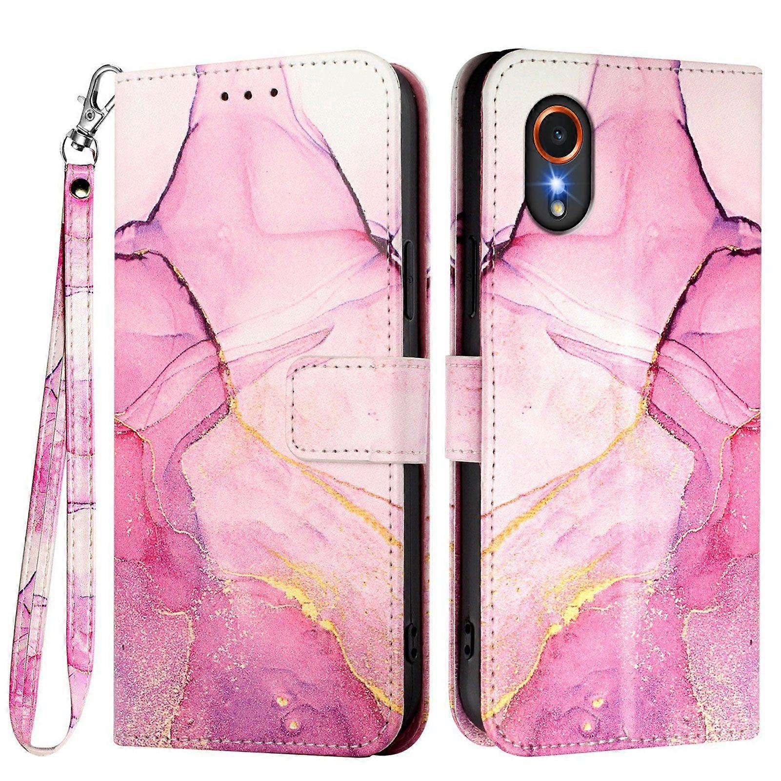 For Samsung Galaxy Xcover7 Case with Strap Marble Pattern Leather Phone Cover Card Holder