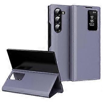 For Samsung Galaxy Z Fold5 5g Case With Card Holder Smart View Window Leather Phone Cover - Light Gr
