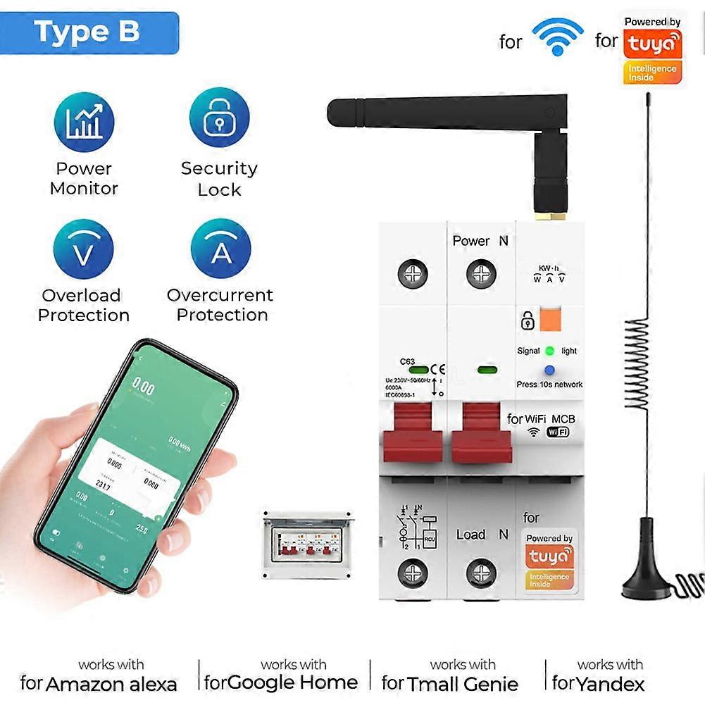【Notice】 Working range voltage: 10v-300v This equipment is a high-power product, please ask a professional electrician to install it. The device only supports 2.4g wireless networks and does not support 5g feature: --[Applicable scenarios] Wifi smart recloser circuit breaker can be widely used in homes, factories, student dormitories, farmland, municipal projects, and can intelligently control water pumps, water heaters, floor heating equipment, etc. --【Power Usage Statistics】View energy reports to properly track your home's energy usage. Understand which devices consume the most energy and develop a plan to save energy and electricity bills. --[Mobile phone viewing] Check the current, voltage, leakage current, and total power through the mobile phone APP. --[Leakage Protection] Automatically trip after leakage to protect your safety. The leakage value can be adjusted between 10ma and 90ma. (Only supported by type A) --[Overvoltage protection] 250v-300v (adjustable) --[Overcurrent protection] 1a-63a (adjustable) --[High temperature alarm] 40-150° (adjustable), default 80° Specification: Product name: circuit breaker Rated voltage: 230v 1.Input voltage: 10v-300v 2. Maximum current: 63a 3. Voltage measurement accuracy: 2% (not exceeding 2% of the total range) Rated insulation voltage: 1000v Working temperature: -30℃-70℃ Size: [Single product packaging parameters] Net weight: 0.196kg (Type C), 0.292kg (Type B), 0.300kg (Type A) Gross weight: 0.300kg (Type C), 0.391kg (Type B), 0.402kg (Type A) Quantity: 1 piece Packing size: 114*80*100mm (Type C), 114*80*100mm (Type B), 114*80*100mm (Type A) Color: as shown in the picture Material: ABS Package Content: 1*circuit breaker notes: 1. Due to various factors such as monitor brightness and light brightness, the actual color of the item may be slightly different from the image displayed on the website. 2. Manual measurement data may have slight deviations. 80 100mm (Type C), 114 80 100mm (Type B), 114 80