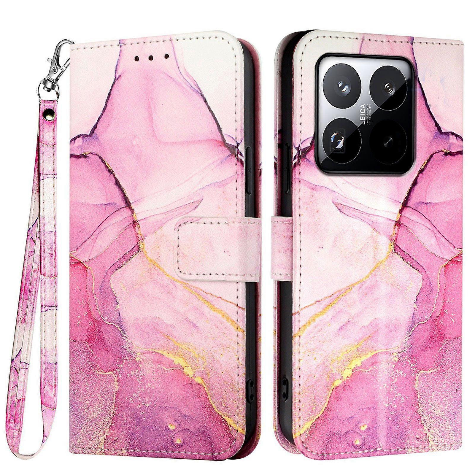For Xiaomi 15T Case with Strap Marble Pattern Leather Phone Cover Card Holder
