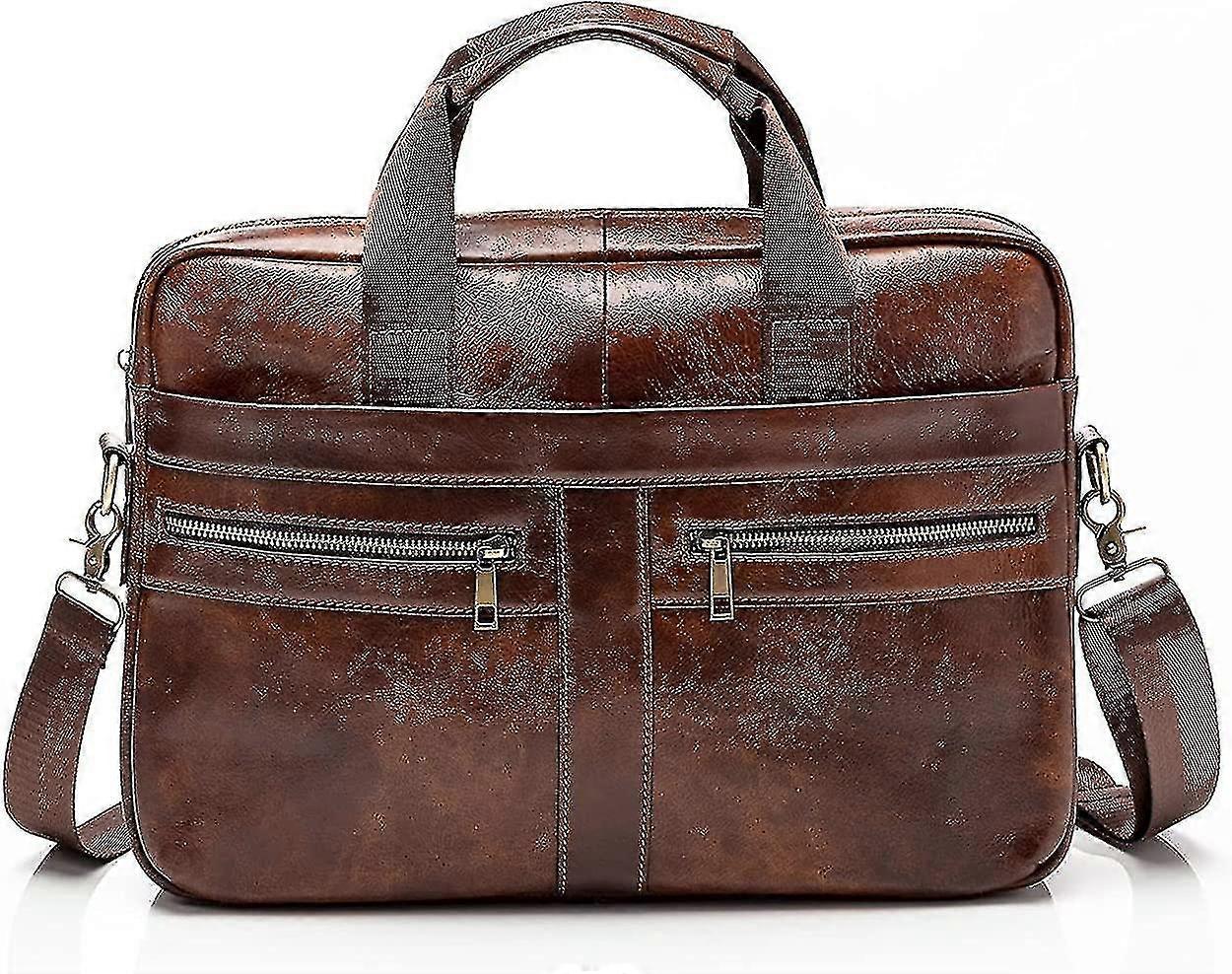 Men's Leather Briefcase, Brown, With Padded Protection, Suitable For Laptops 14 Inches And Below