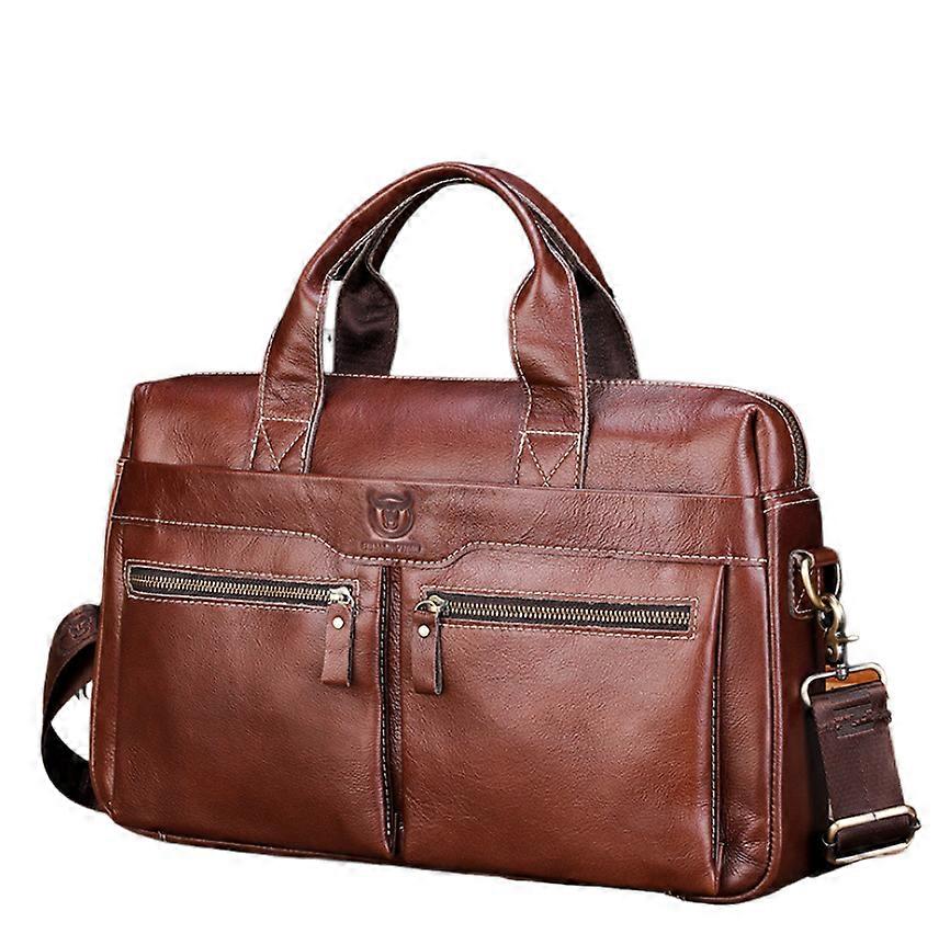 Leather Laptop Bag for Men, 15.7 Inch Brown Cowhide Briefcase with Detachable Strap and Pockets