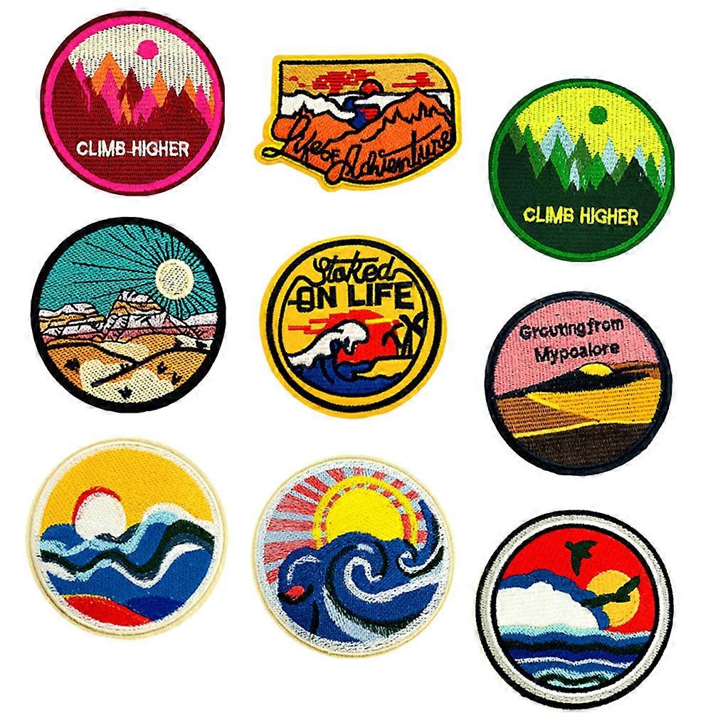 Round Badge Patch Embroidery DIY Applique for Cloth Use 9Pcs Assorted Color