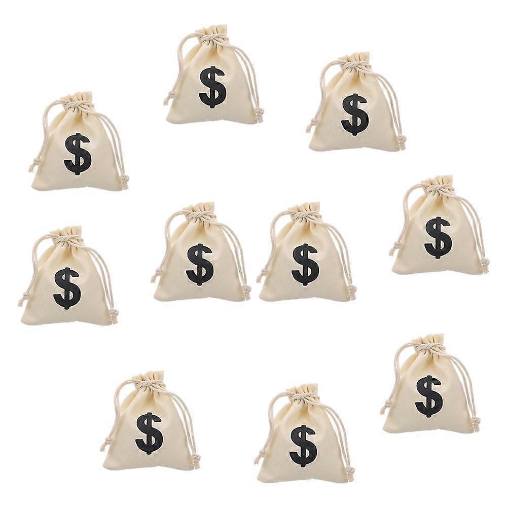 Pattern Bag for Party Gift Use with 10Pcs Beige Canvas Drawstring Bags