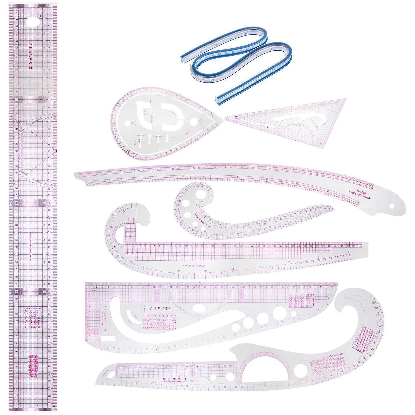 Pattern Making Ruler Set 2 Sets Curved Sewing Ruler Suitable For Beginners 21.00X13.30cm Easy To Carry 9-Pcs