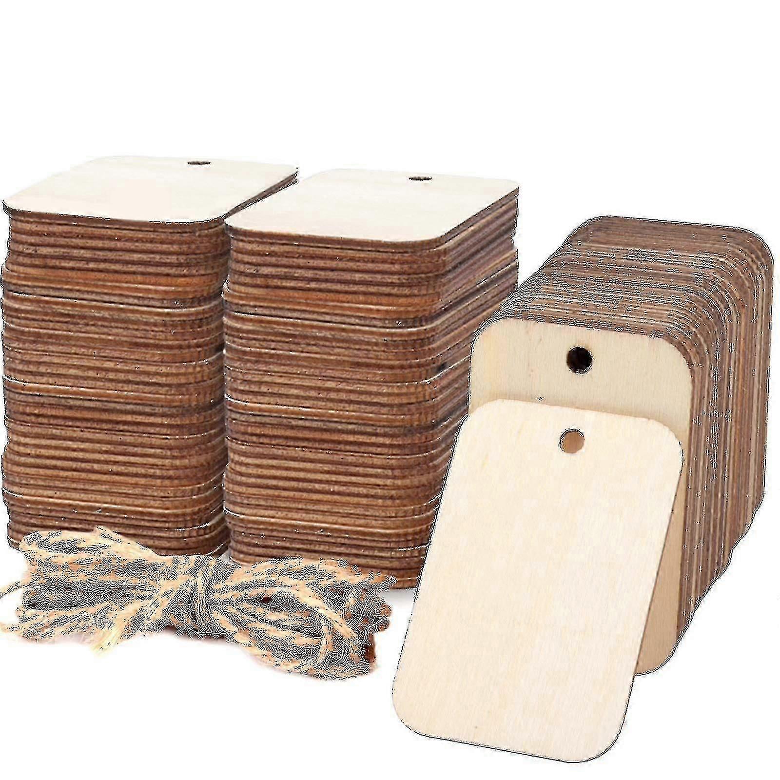 Unfinished Wood Pieces Rectangle-shaped, Light Wooden Cutout Natural Rustic With Hole (100 Pieces, Wood Color)