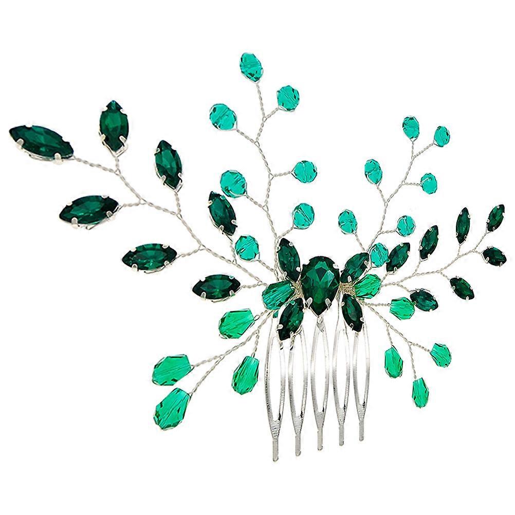 Green Crystal Hair Comb Rhinestone Hair Comb for Wedding Decoration with Eye-Catching Design