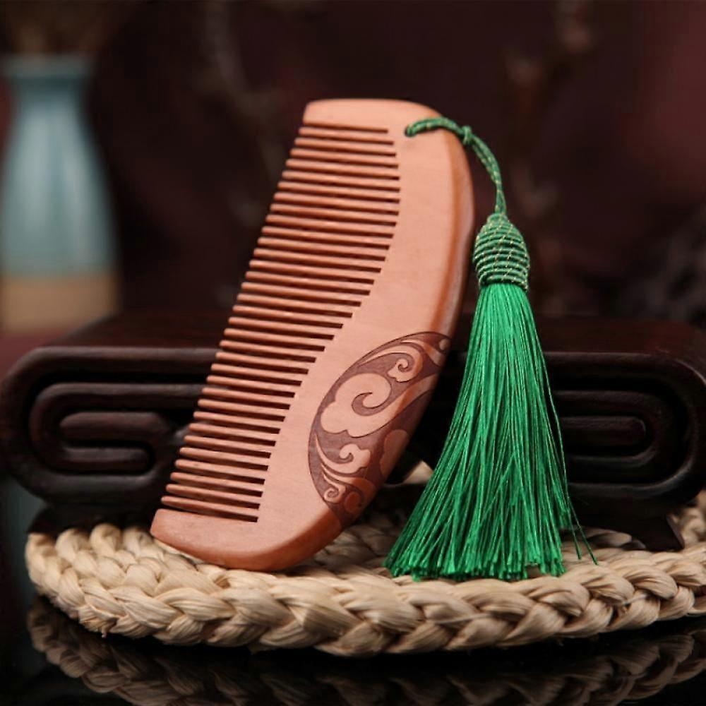 1 Pcs Wood Hair Comb with Tassel, Anti-Static & Detangling for Curly, Thick, Wavy, Straight Hair, Compatible with Beard & Head