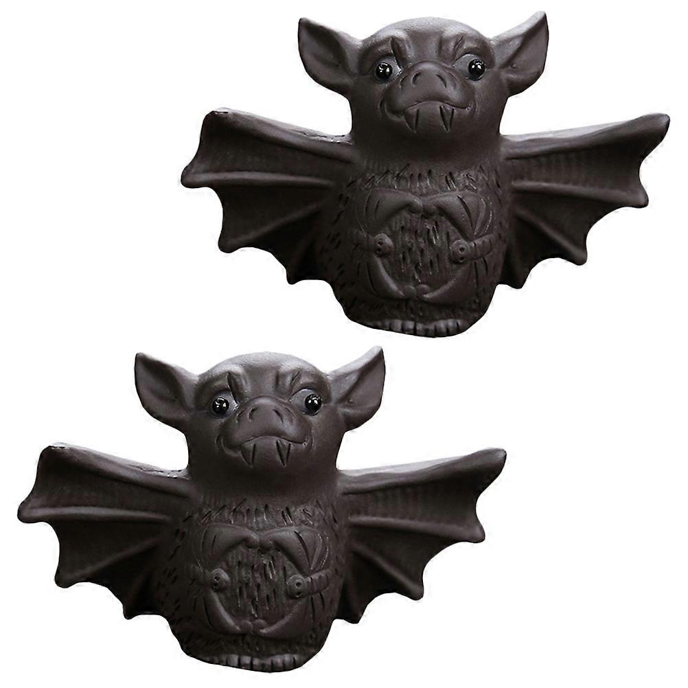 Small Bat Tea Pet Figurines for Tea Room Craft with 6Pcs Purple Clay