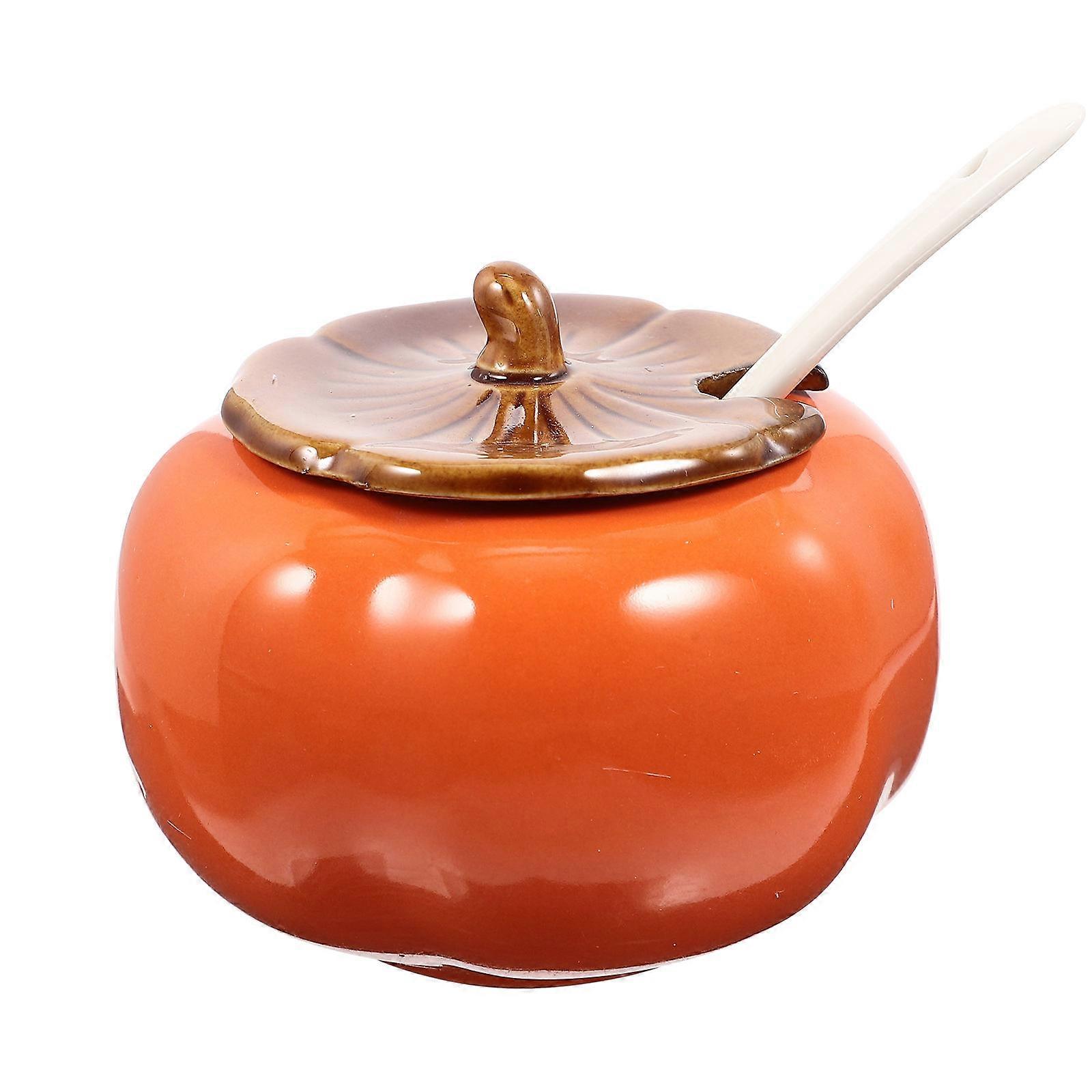 Persimmon Shaped Ceramic Condiment Jar 3 Sets Easy Cleaning And Dust Protection For Bar And Home Use