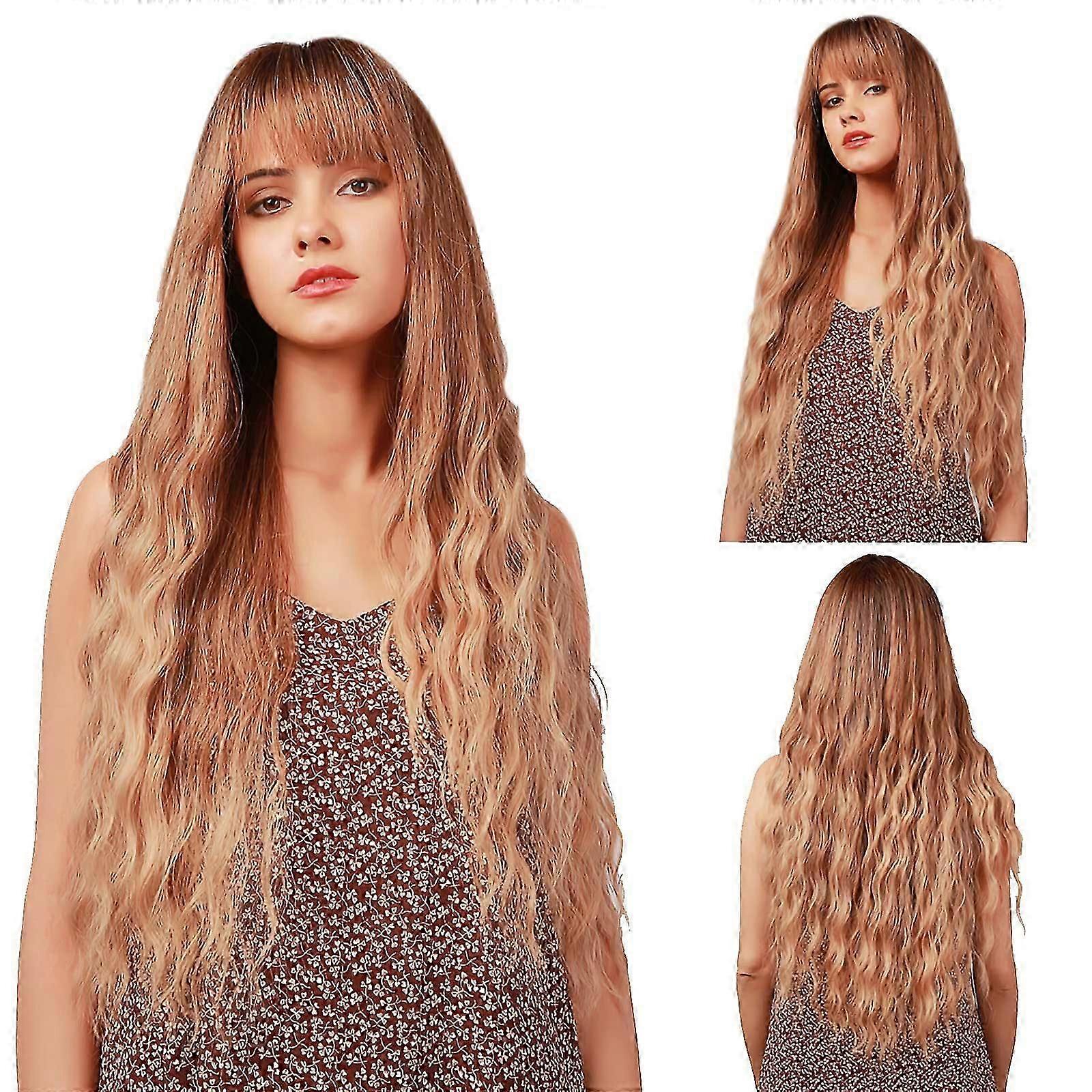 Wig 32inch Light Brown With Gradient Gold High Temperature Silk Chemical Fiber Hair