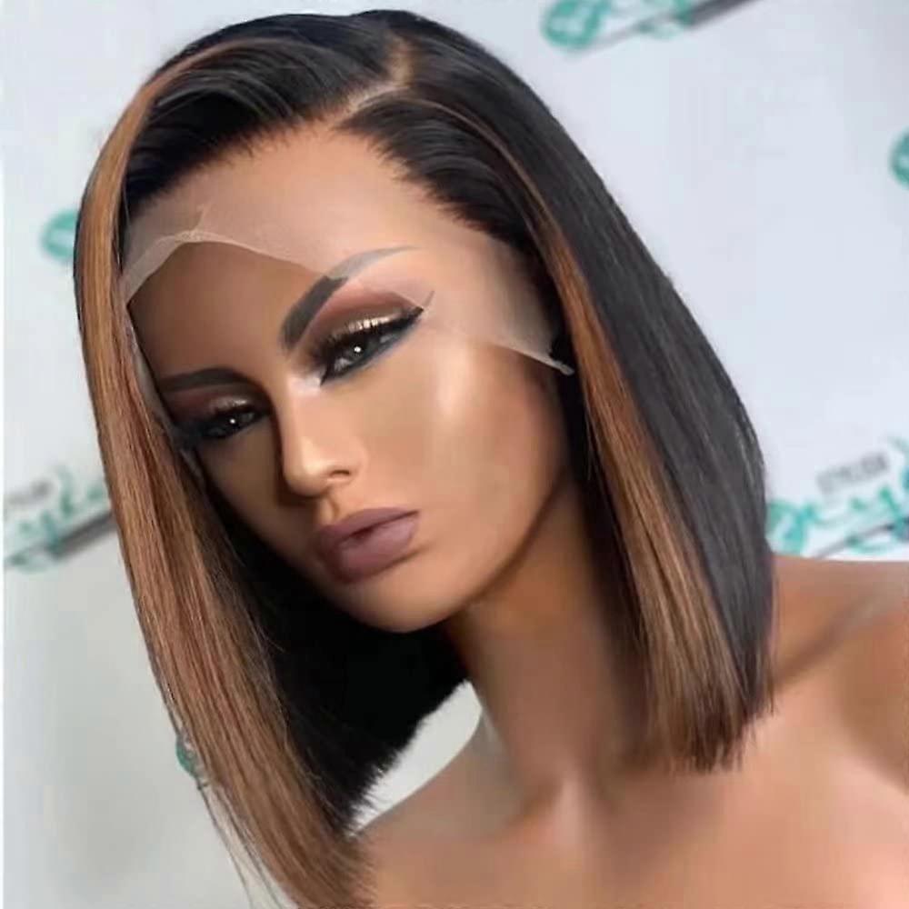 12 Inch Highlight Lace Front Wig Brazilian Human Hair Bob Pre Plucked HD Transparent 150% Density