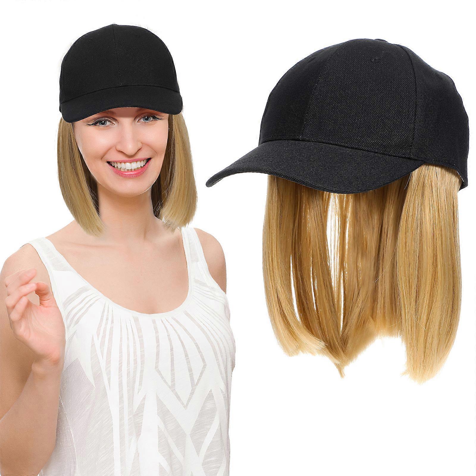 Wig Hat Short Straight Wig Hat for Women with Hair Extensions 2Pcs
