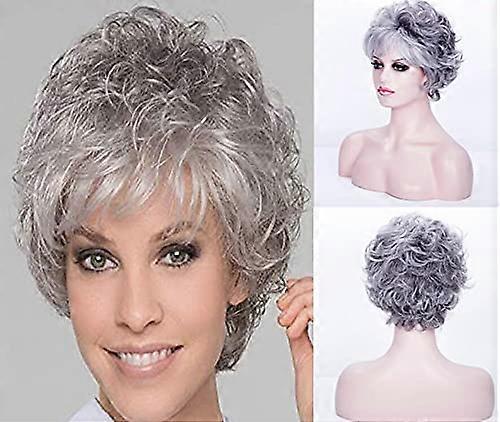 Silver Grey Short Curly Wig with Bangs, Pixie Cut Synthetic Heat Resistant Wig for Women