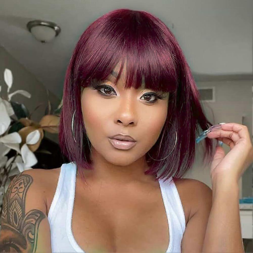 Short Straight Black Wig with bangs Human Hair Wig for Women 8 inch Short Wig