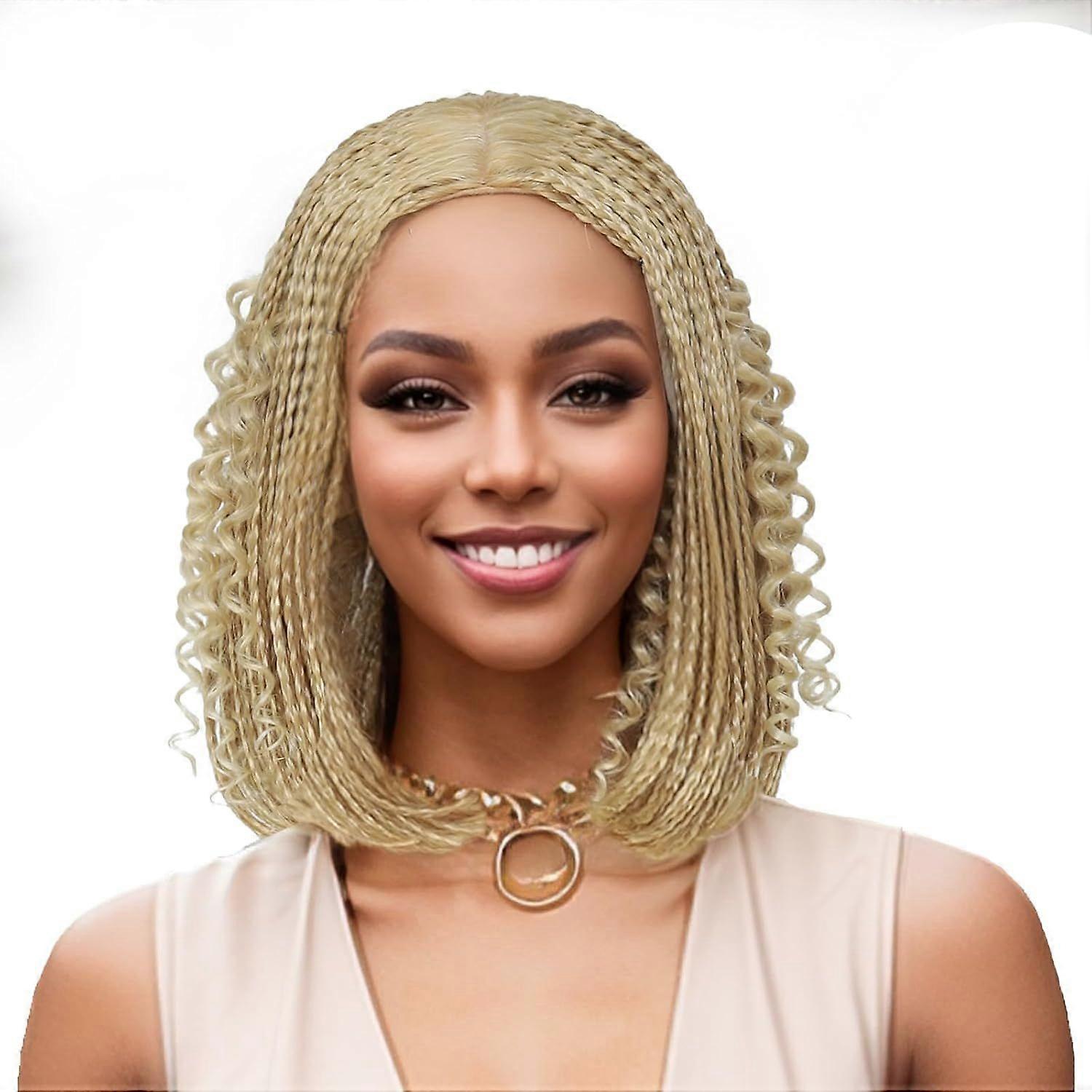 Short Box Braided Bob Wig for Black Women, 14 Inch Curly Goddess Box Braids Wigs