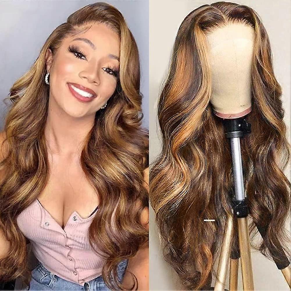 26 Inch Highlight 4/27 Brazilian Body Wave Lace Front Human Hair Wig Pre Plucked 180% Density