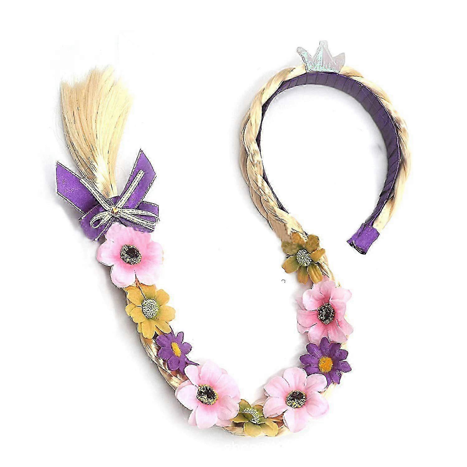 Princess wig, 29 inches long with a flower headband, easy to wear and suitable for parties
