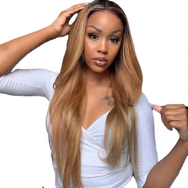 Women's wig high temperature silk front lace center split 26inch long straight hair