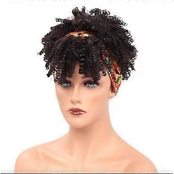 Kinky Curly Wig with Bangs Short Afro Puff Wig Head Wrap 2 in 1 for Black Women Afro Wigs Head Wrap Wigs with Headband Black Kinky Curly Hair 4 Inch