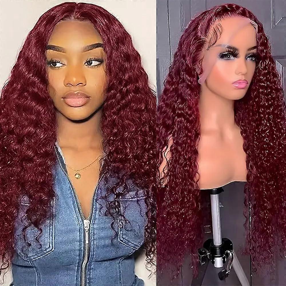 99J Burgundy Human Hair Lace Front Wig 20 Inch 13x4 Deep Wave Wet and Wavy 180% Density