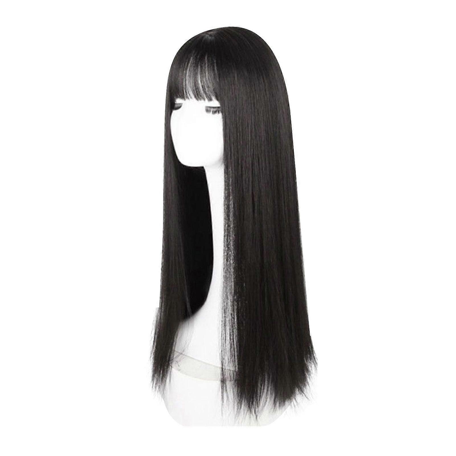 Long Black Straight Wig with Bangs Women Heat Resistant Fashionable Elegant Synthetic Wig 28.3 Inch
