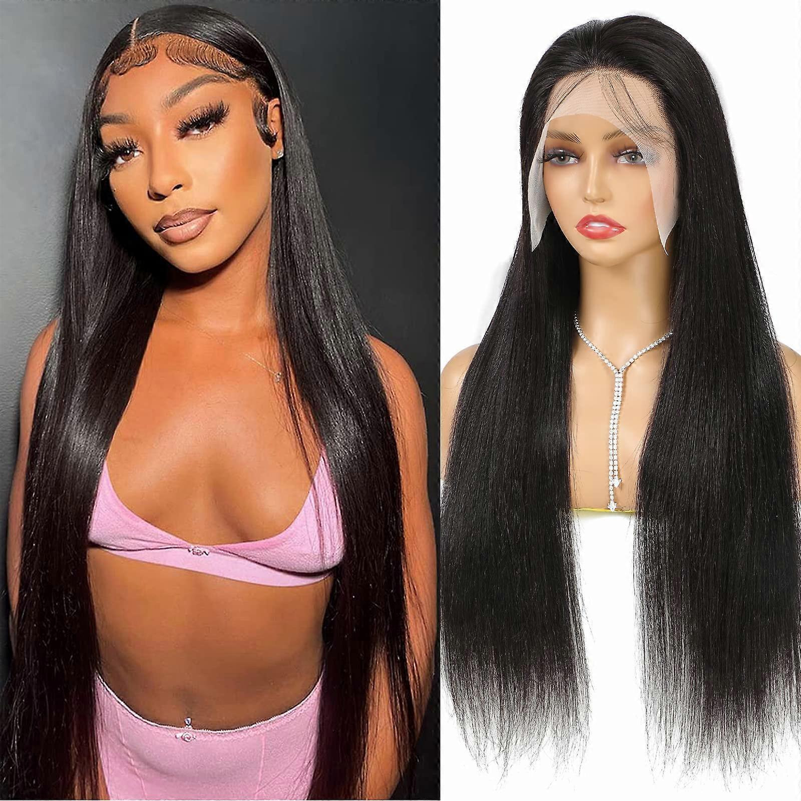 Straight Lace Front Wig Human Hair 13x4 HD Transparent Lace Pre Plucked Glueless 32 Inch