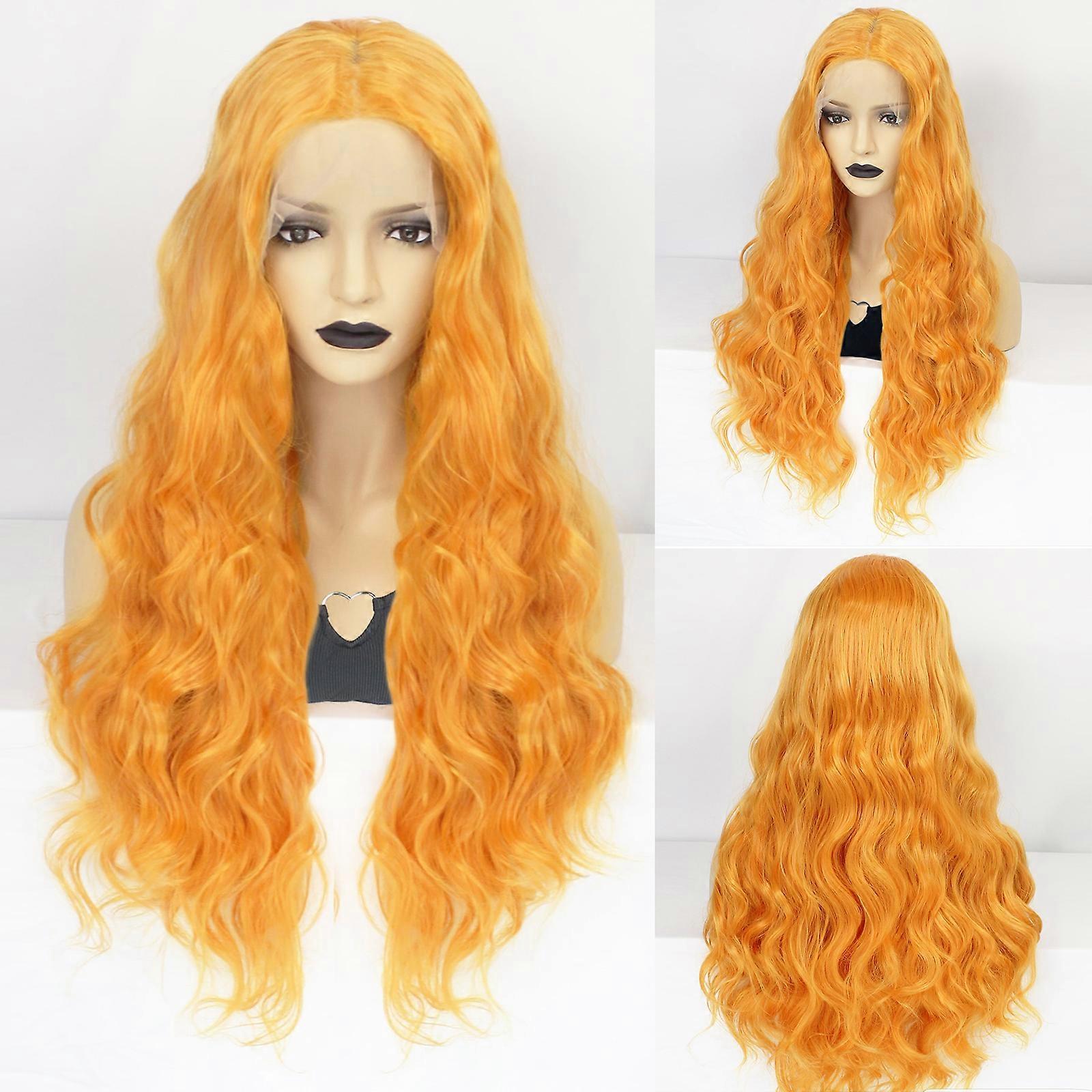 13*3.5*1 Synthetic Orange Body Wave Curly Silky Wig 28 inch Long Classic fashion for Women Dress Up Wig
